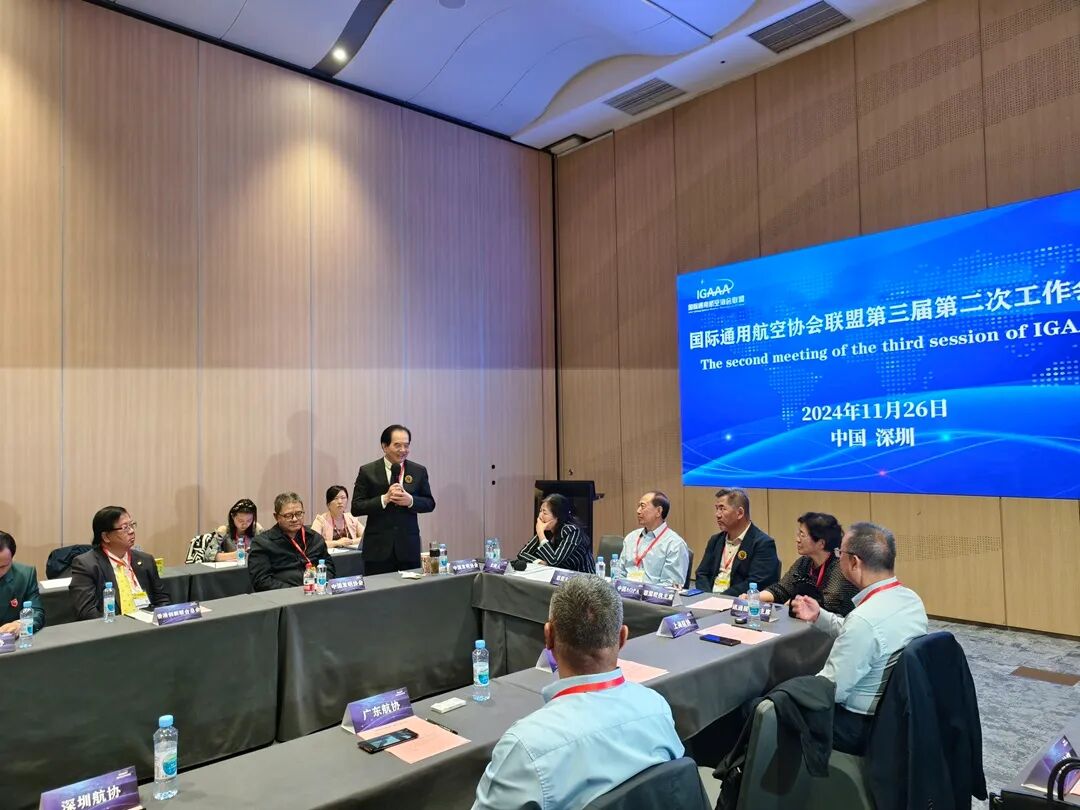 11月26日下午,余华荣、唐大立应邀参加国际通用航空协会联盟工作会议,向与会代表介绍协会主要工作和品牌活动开展情况,寻求合作发展,助力通航产业和低空经济发展。