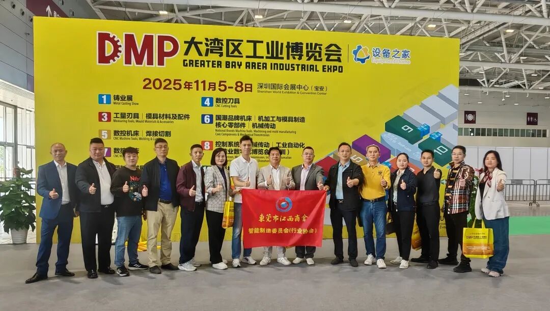 2025年11月5日,2025 DMP大湾区工业博览会于深圳国际会展中心(宝安)隆重启幕,点亮这场全球制造业的年度盛宴。来自全球的行业领袖、顶尖展商与专业观众齐聚一堂,共同见证这一属于智造未来的“高光时刻”。在这场引领制造业变革的亚太工业盛典上,东莞市江西商会智能制造委员会(行业协会)会长何立衡亲自带队,奔赴深圳,深入产业前沿,共谋高质量发展新路径。参与成员有:智能制造委员会(行业协会)秘书长刘孝聪、执行秘书长李梅华,以及赖国忠、陈蕃、曾春水、聂莉、吴赣文、田先和、戴少华、尹国军、刘丽飞、饶思健、周永佐、饶蓉华、刘开敏等二十余位行业精英。