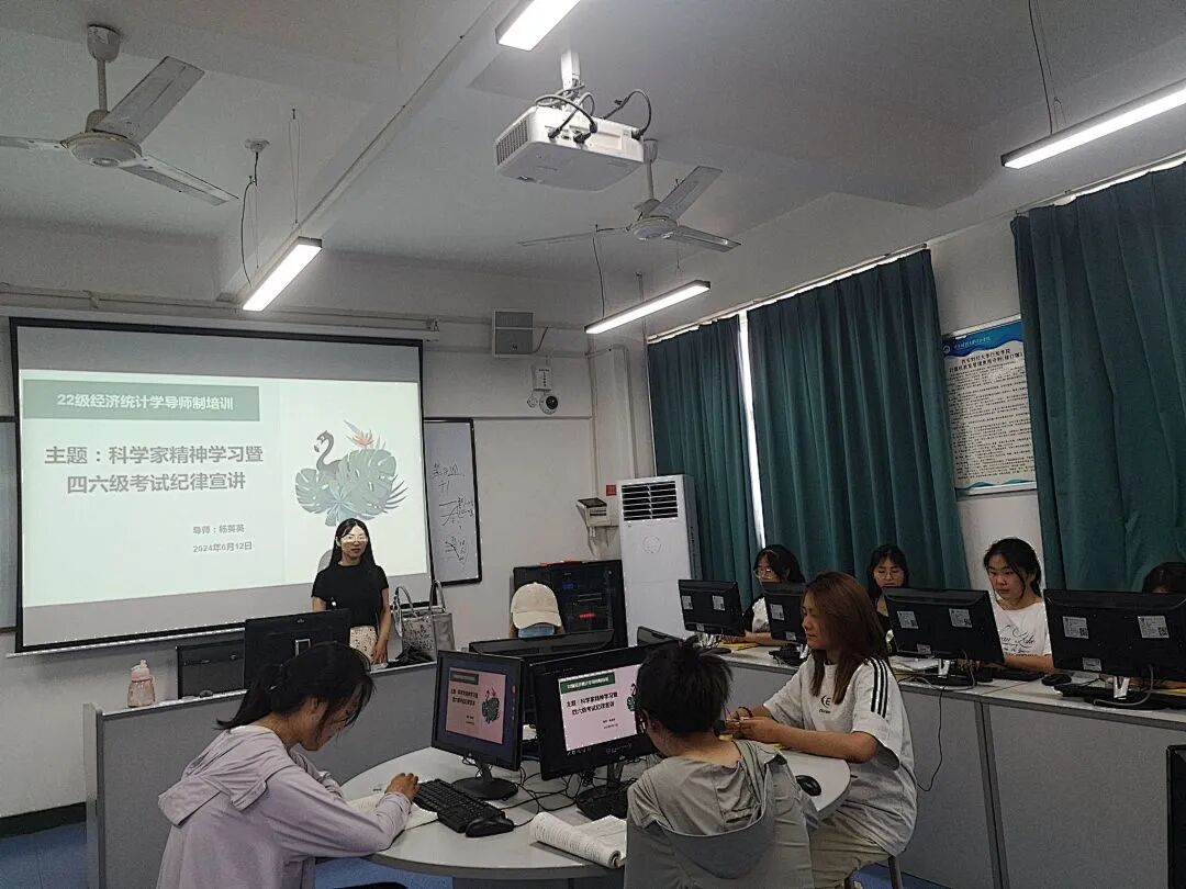 为践行学校关于《2024年全国科学道德和学风建设宣讲教育》系列活动,大力弘扬科学家精神,加强学校优良学风建设,端正学生考试态度。6月13日,经济统计学专业各学业导师分别对21级、22级全体学生开展了英语四六级考试考前纪律教育宣讲及科学家精神学习指导。本次负责宣讲的四位教师为毛雪莲、杨英英、靳珍、谢妮妮。