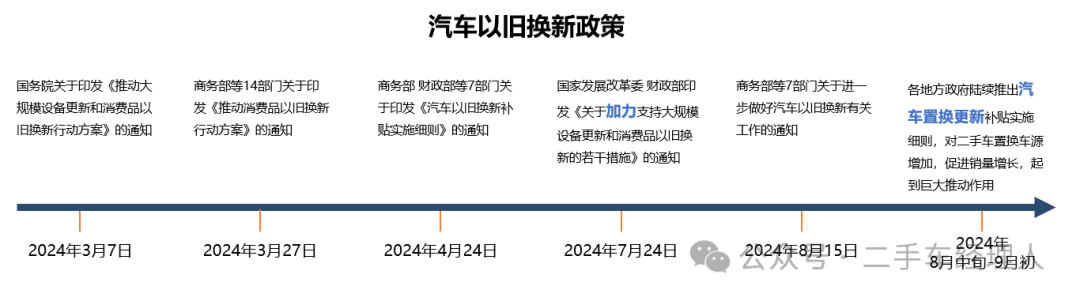 此项政策是从今年3月初,为推动经济高质量发展,促进投资和消费、拉动内需,国务院印发《推动大规模设备更新和消费品以旧换新行动方案》,推出了消费品以旧换新政策。随后为贯彻落实党中央、国务院决策部署,商务部等14部门于3月底 印发了《推动消费品以旧换新行动方案》的通知进一步落实和推进。而汽车属于重点推进项目,所以商务部 财政部等7部门于4月发布了《汽车以旧换新补贴实施细则》,明确了汽车以旧换新资金补贴政策。随后部分省市陆续发布汽车以旧换新补贴实施细则,汽车以旧换新活动在全国各地全面开展。经过几个月的实施,汽车以旧换新政策成效显著。