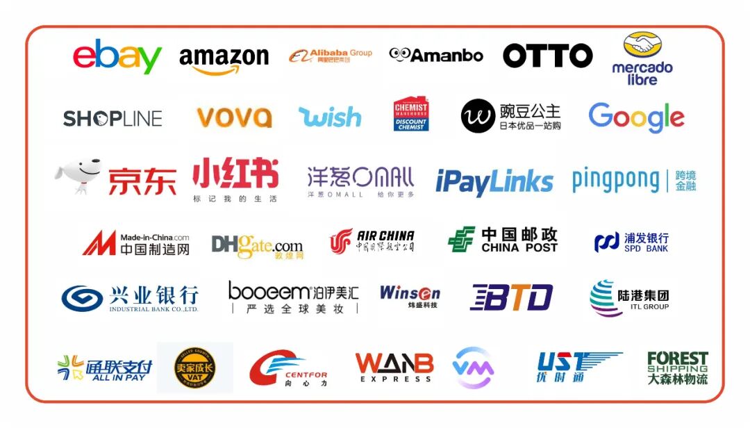 国内外知名跨境电商企业展区邀请到eBay、亚马逊、阿里巴巴、amanbo、Otto、美客多、shopline、vova、wish、澳洲大药房、豌豆公主、谷歌以及京东、小红书、洋葱网、iPayLinks、PingPong、中国制造网、敦煌网、中国国际货运航空、中国邮政等跨境电商平台企业、物流企业、支付企业,现场对接,洽谈合作,共同促进跨境电商产业高质量发展。