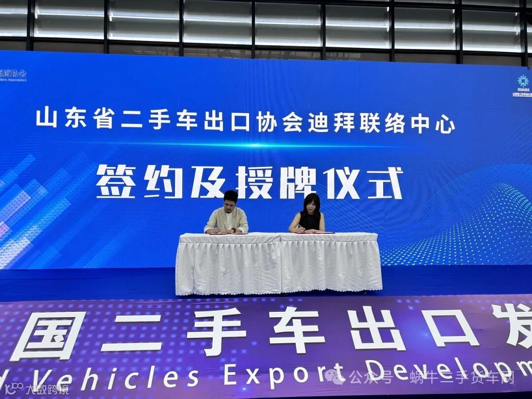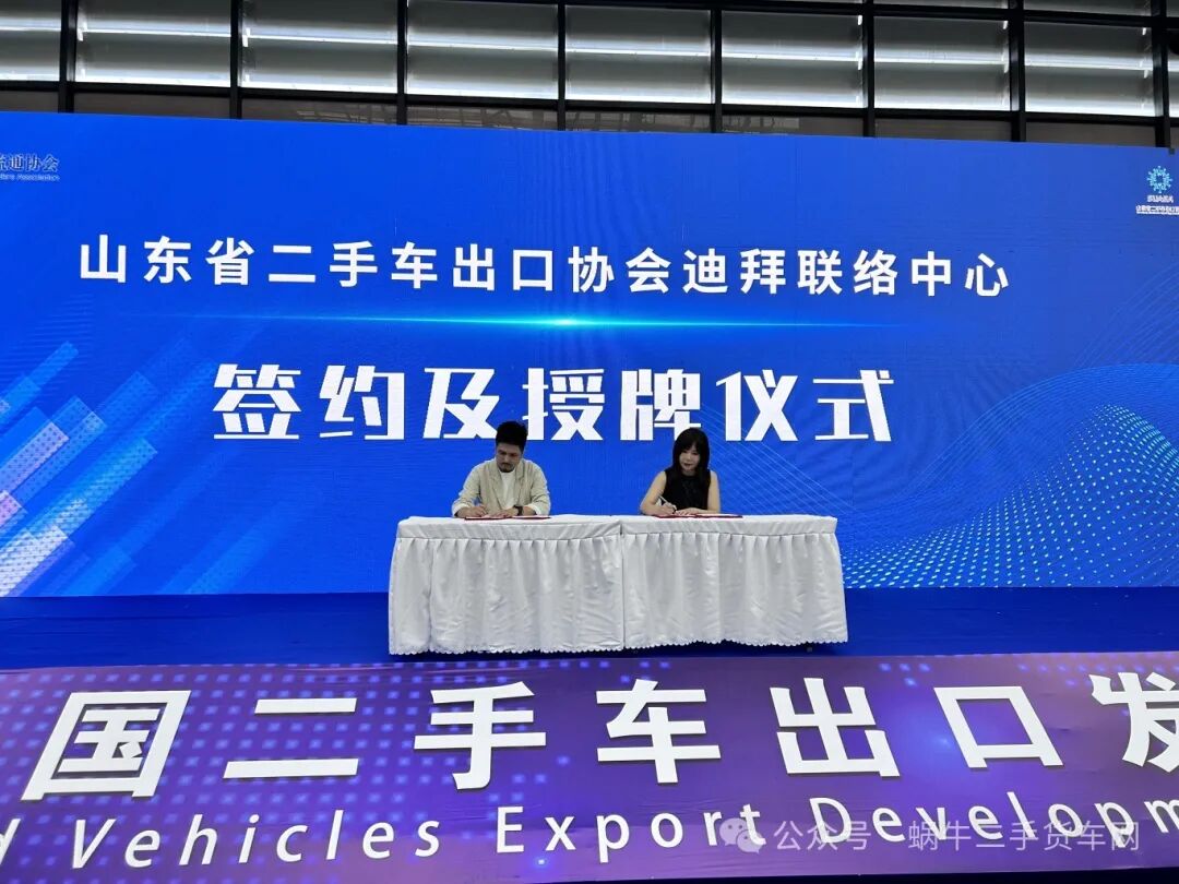 山东省二手车出口协会秘书长吕亚惠、姚杰参加了山东省二手车出口协会迪拜联络中心签约及授牌仪式。这一仪式标志着山东省二手车出口协会在国际市场上的进一步拓展,为山东省乃至全国的二手车出口企业提供了更加广阔的合作平台和市场机遇。