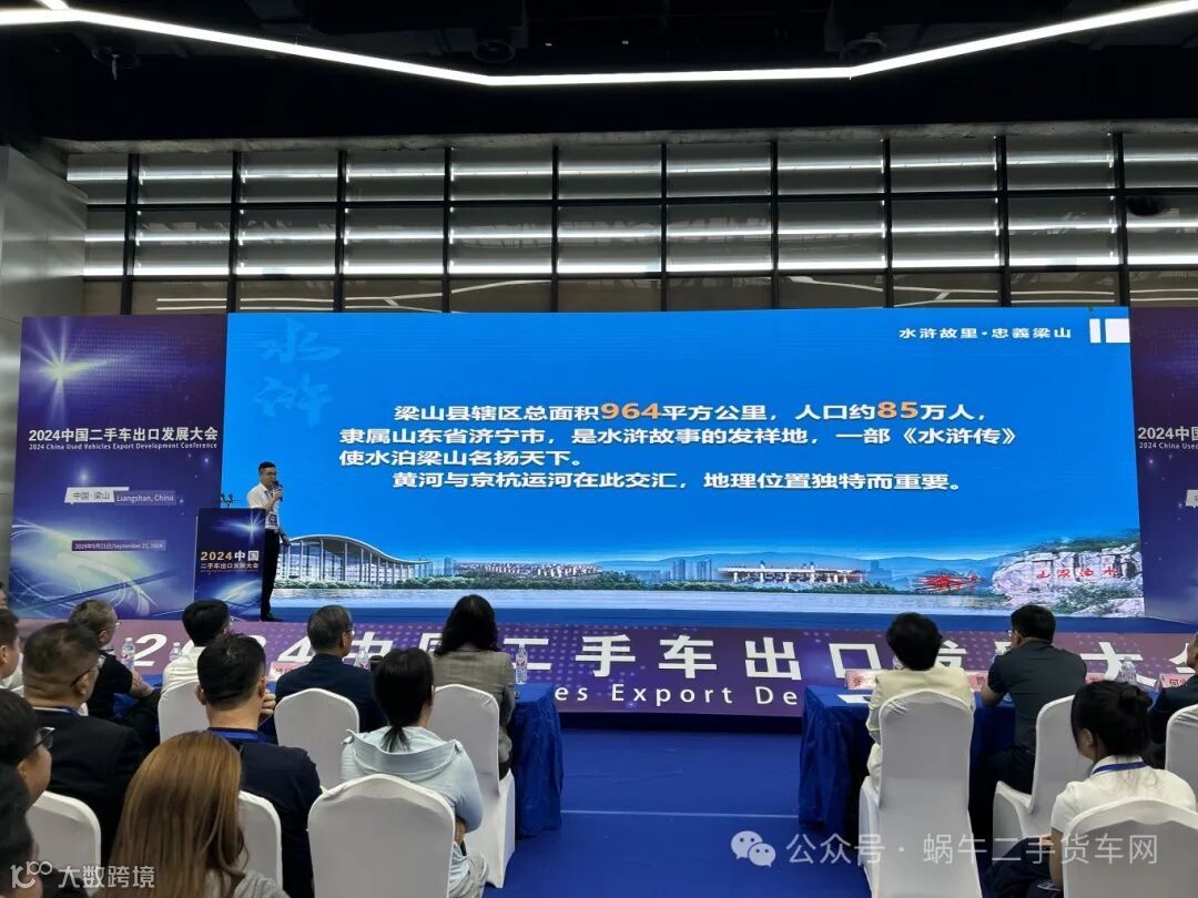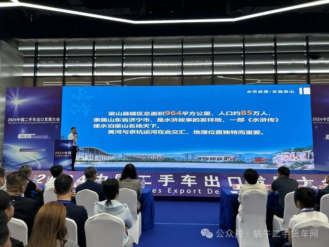 9月21日,由中国汽车流通协会、山东省二手车出口协会主办,梁山县工业和信息化局、山东二手车流通协会、梁山县汽车产业协会协办,梁山县商用二手车行业协会、蜗牛货车网(山东)电子商务有限公司承办的“2024中国二手车出口发展大会”在梁山县国际会展中心成功举办。