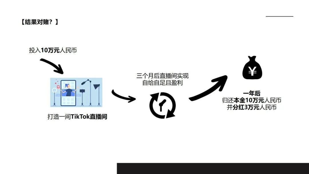 现对外招募100个直播间投资人,以结果对赌的方式进行项目合作。