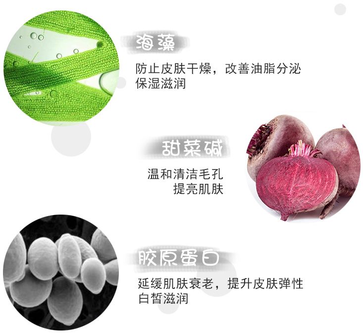 含海藻,甜菜碱和胶原蛋白等多种滋润精华