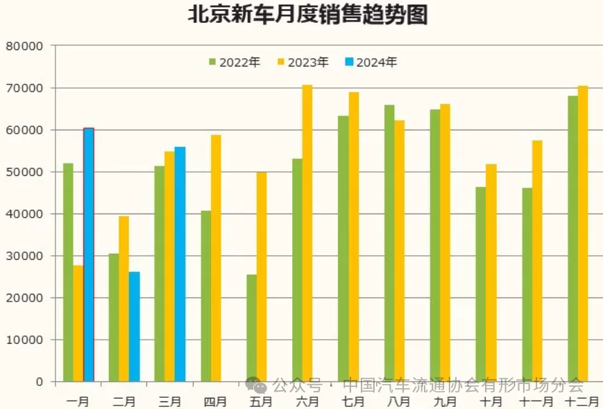 1-3月北京累计交易新车14.22万辆,同比去年12.18万辆累计增长16.82%,增幅高于全国6.22个百分点。