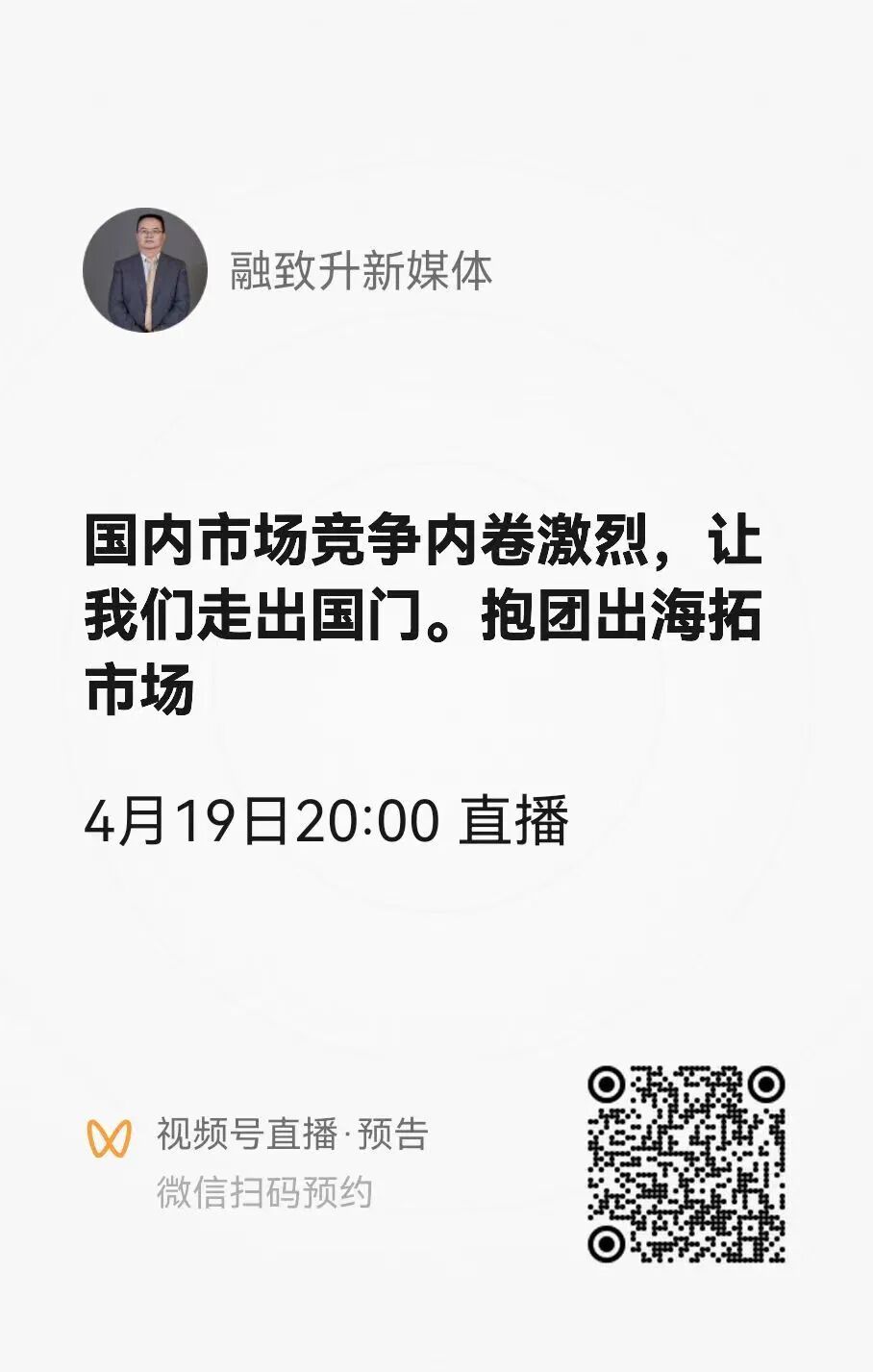 ⭕ 在这个信息爆炸的时代,新媒体已经成为我们生活中不可或缺的一部分。国内市场卷不动,那我们就走成国门。那么,如何在这个大潮中独树一帜,让自己的品牌、故事走出国门呢?周五晚8点,融致升新媒体团队将带来跨境电商TK的介绍。我在直播间等你哟!