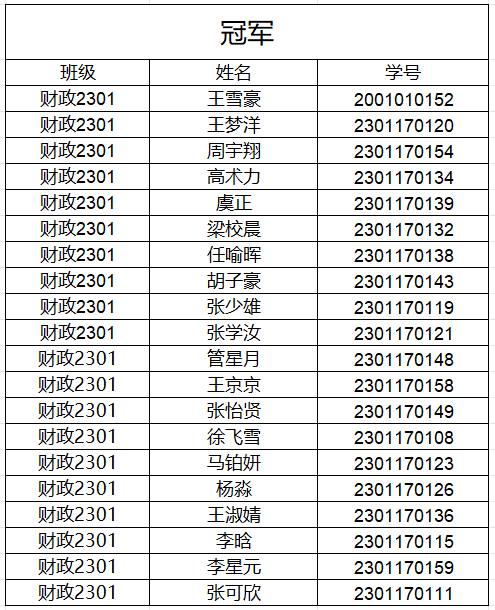 让我们热烈祝贺财政2301赢得此次拔河比赛的第一名!