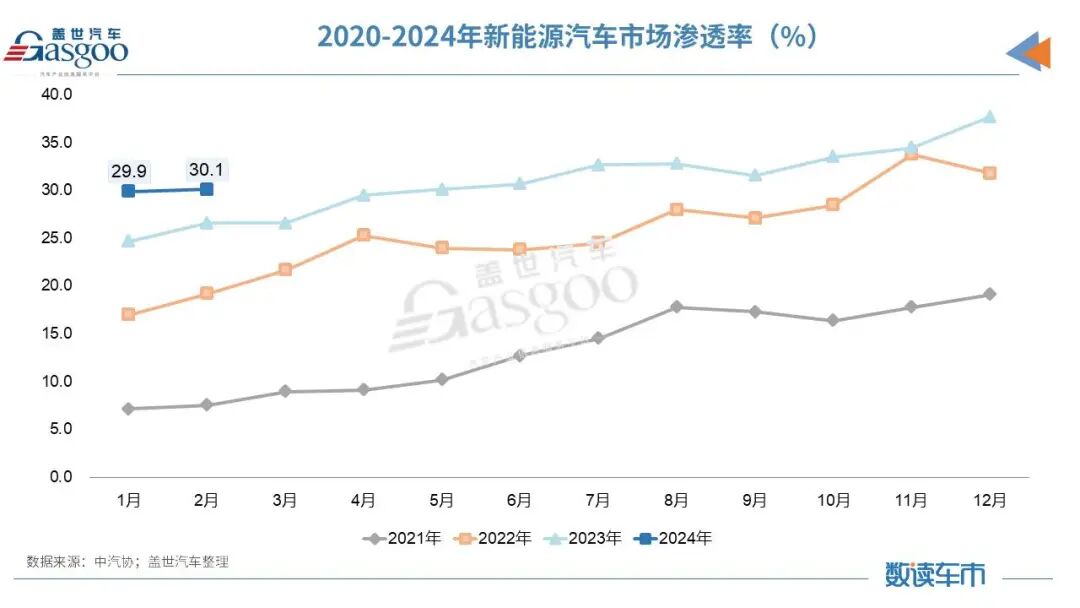根据中汽协最新统计数据,今年2月,我国新能源汽车销量达到47.7万辆,市场占有率达到30.1%,环比1月的29.9%提升0.2个百分点。新能源车市场渗透率的提升,说明消费者对新能源汽车的接受度和认可度都在进一步加强。且随着电池成本的不断下降,新能源汽车发展仍有巨大的提升空间。