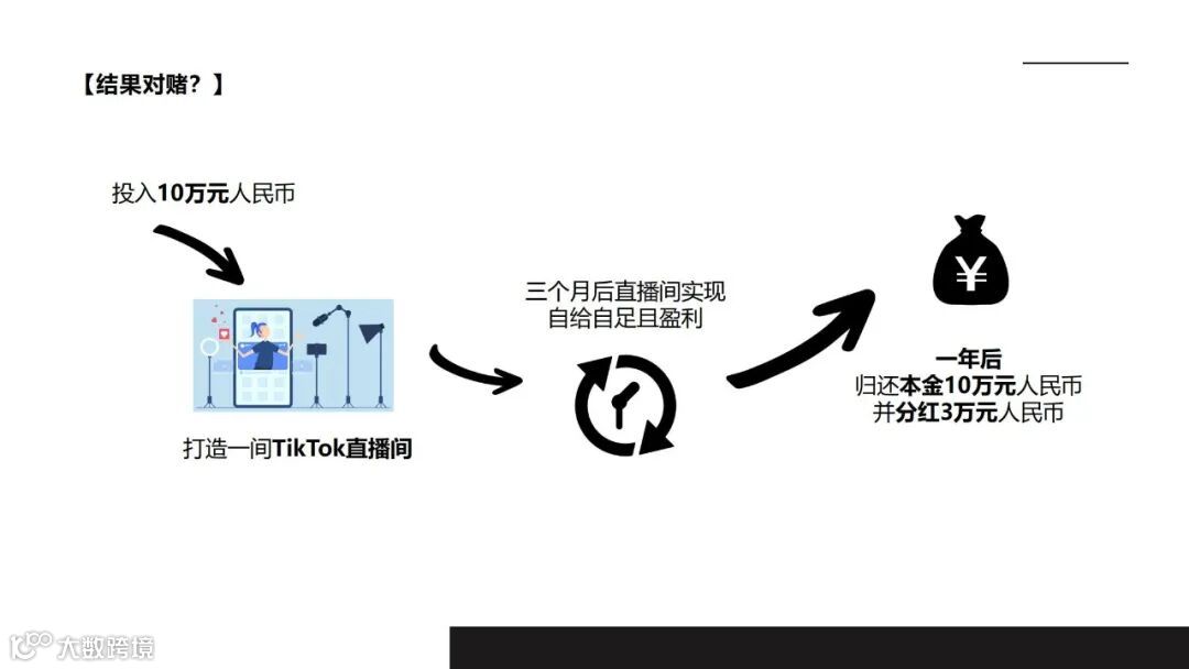 现对外招募100个直播间投资人,以结果对赌的方式进行项目合作。