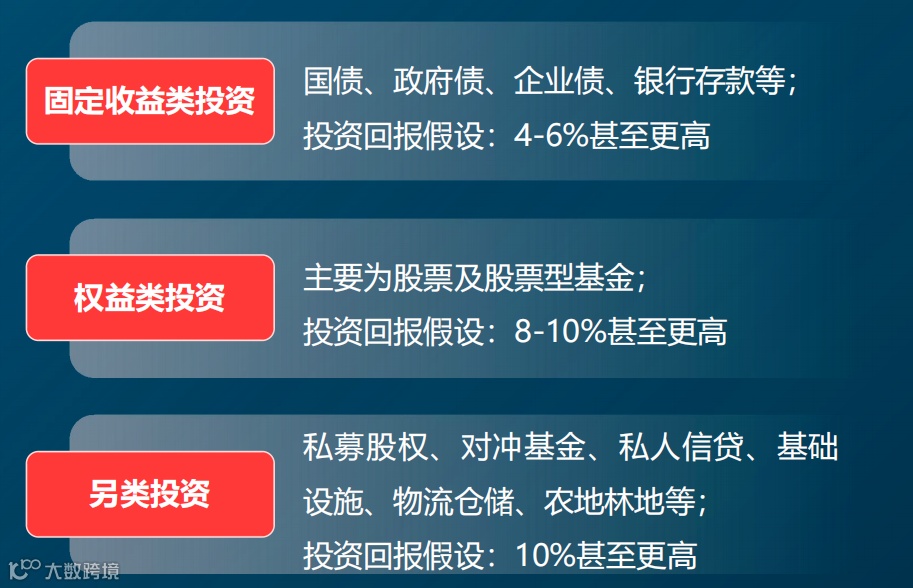 ②权益类以全球优质股票、基金为代表,是分红险非保证部分的主要来源,支持长线的高收益。