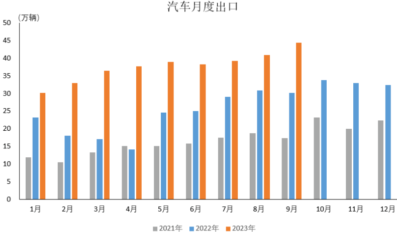 2023年9月,我国汽车出口连续两个月超40万辆。