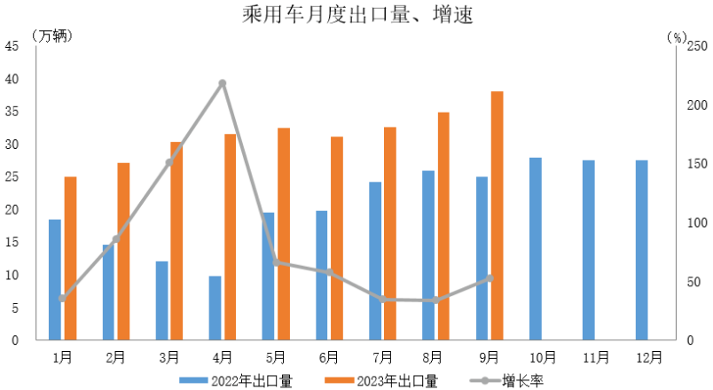 2023年1-9月,乘用车出口283.9万辆,同比增长67.4%。