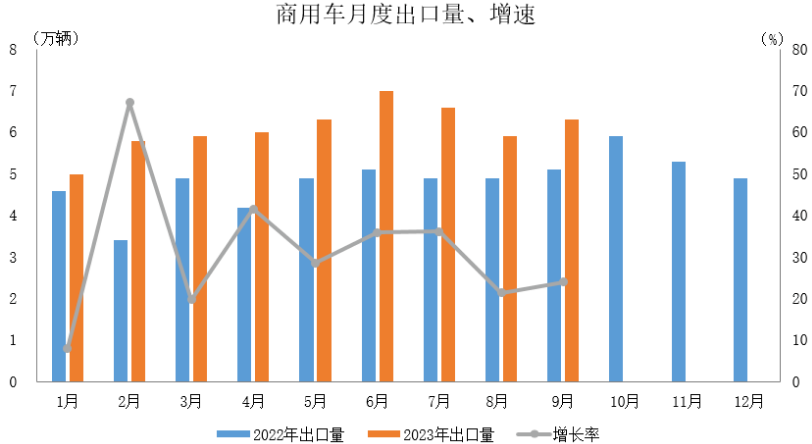 2023年1-9月,商用车出口54.9万辆,同比增长30.2%。