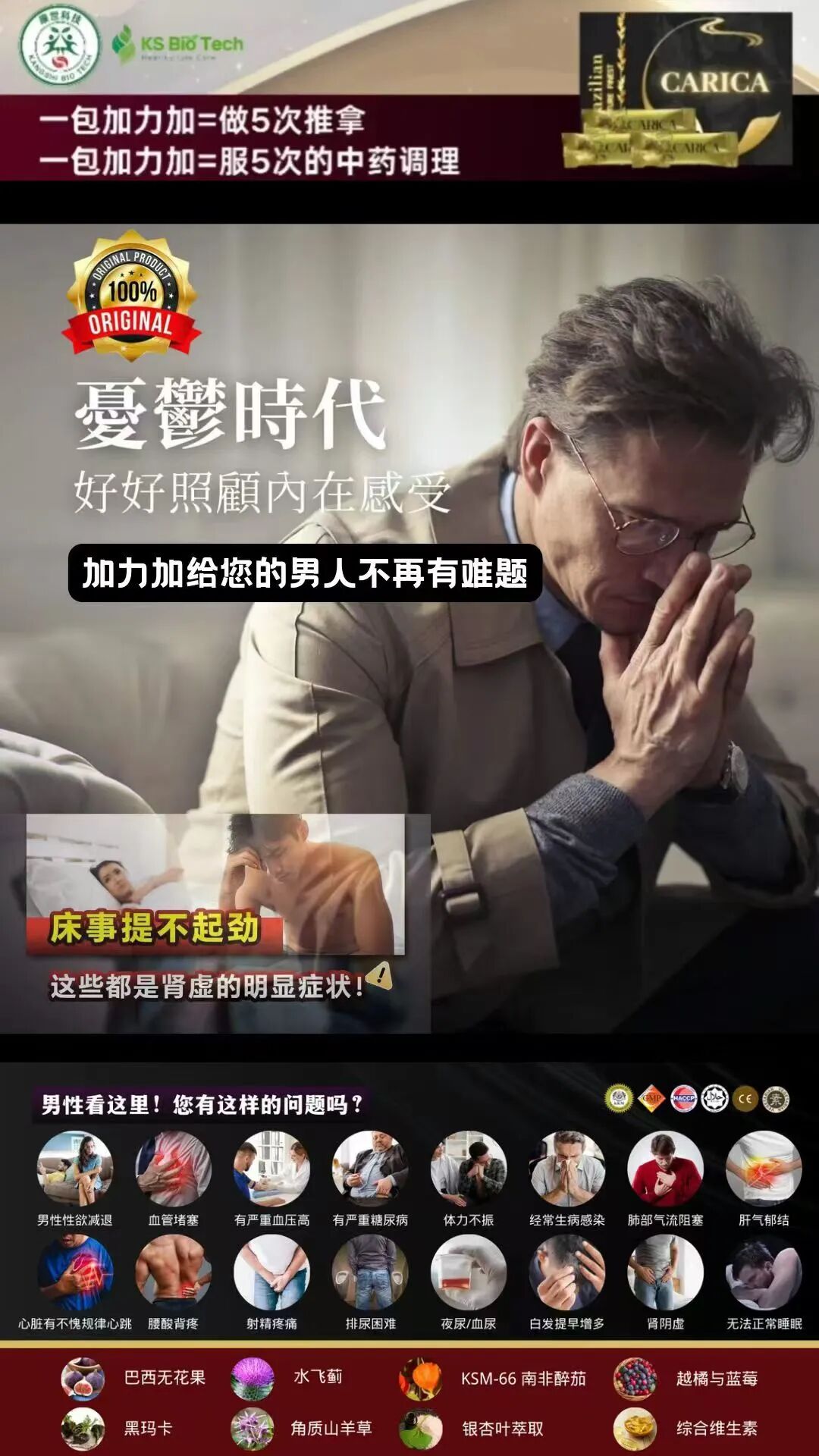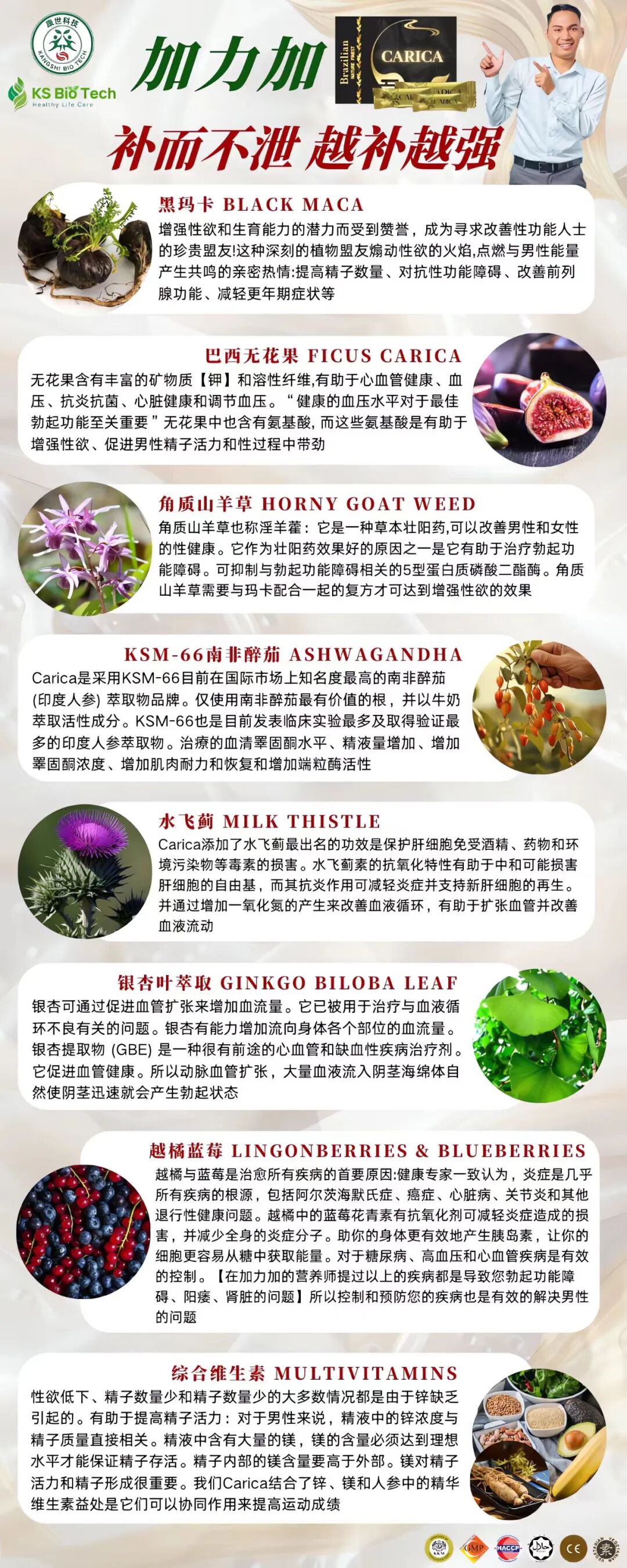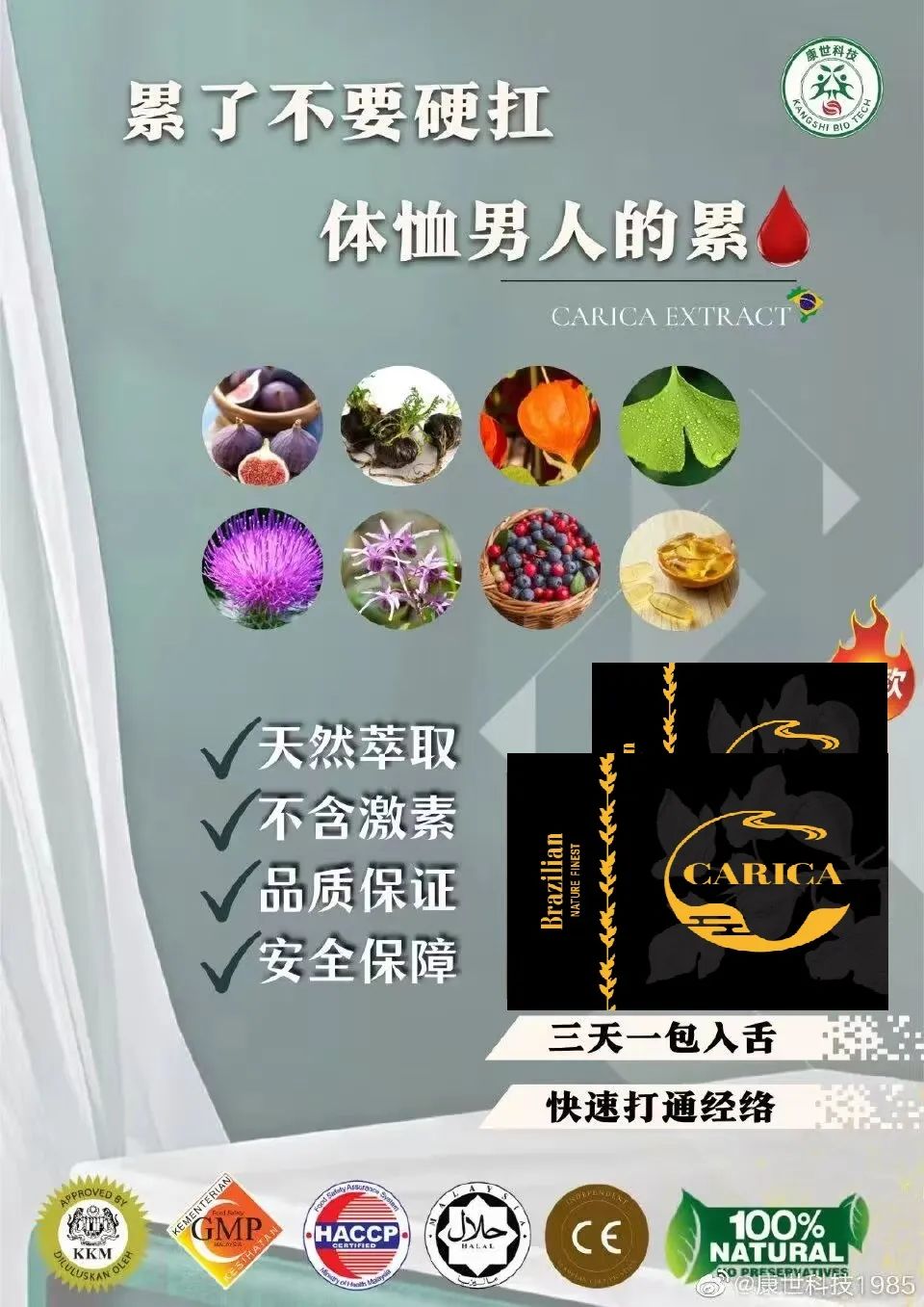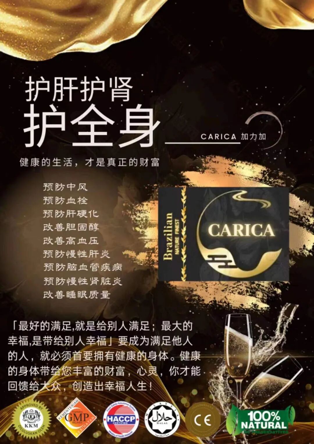 康世科技超临界流体萃取是国际上先进的物理萃取技术(正品质量保证💯原有的精华和作用)健康医疗团队共花7年为研究出解决方案,坚持不懈的精神,品牌就决意取名为CARICA成新一代保健产品。已证实超临界流体萃取技术SUPERCRITICAL FLUID EXTRACTION (JSFE)萃取的天然植物更有生物活化性和保存原有的精华和作用。CARICA加力加获得多项国际权威认证!放心服用安全服用,为您健康长寿护航,为您家庭和谐加分!原装进口的舌下含服直接进入细胞的纳米科技的产品。