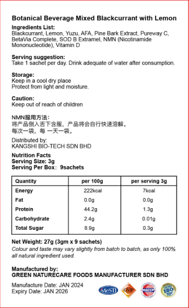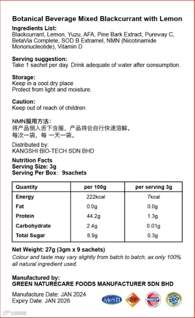 产品成分:AFA束丝藻/松树皮/烟酰胺单核苷酸/维C维D