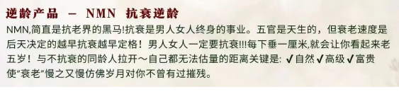 NMN抗衰逆龄的爆款产品,让你的年龄逆转,整个身体很精神,皮肤水润有弹性。长期服用,用事实证明你的改变。