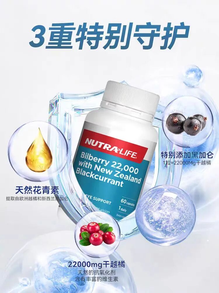 一粒纽乐越橘+黑加仑护眼精华≈22000mg干越橘,同体积含量高于其他产品2倍以上,而且价格不贵,性价比极高。