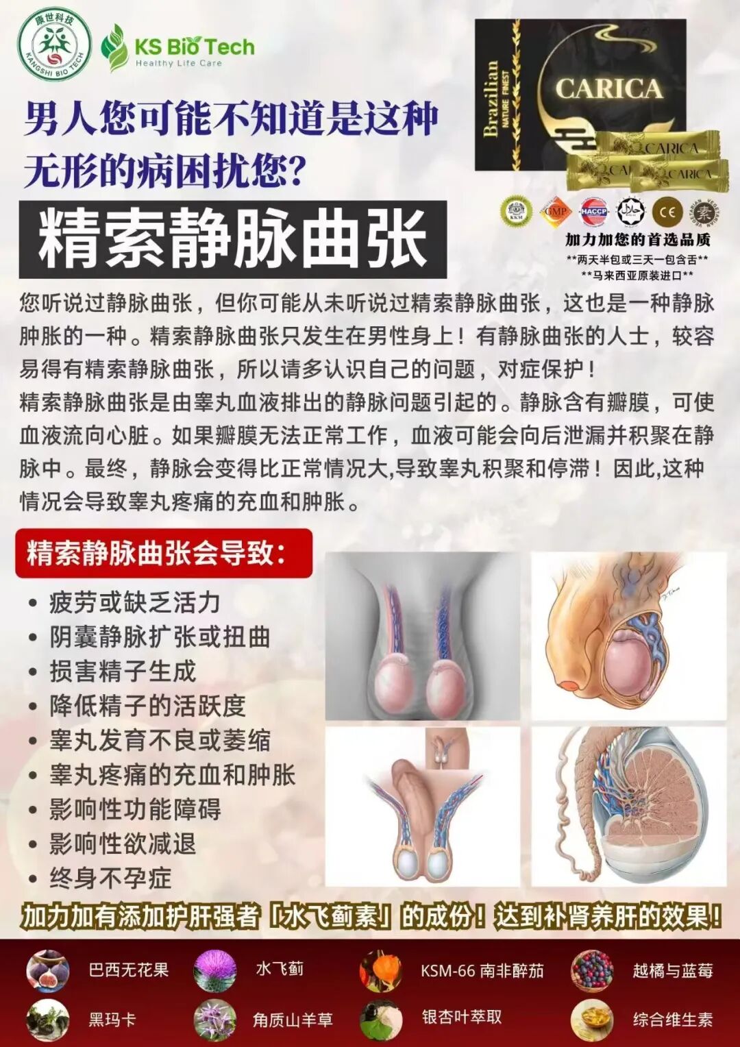 - 精索静脉曲张(男性):阴囊内静脉迂曲,可致阴囊坠胀感、疼痛,甚至影响生育。