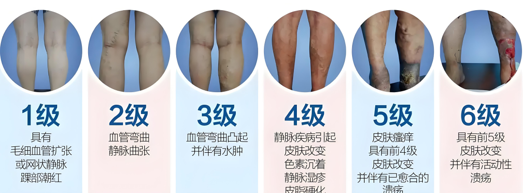 - C0期:无症状,仅存在静脉曲张风险(如家族史、久站职业等)。
