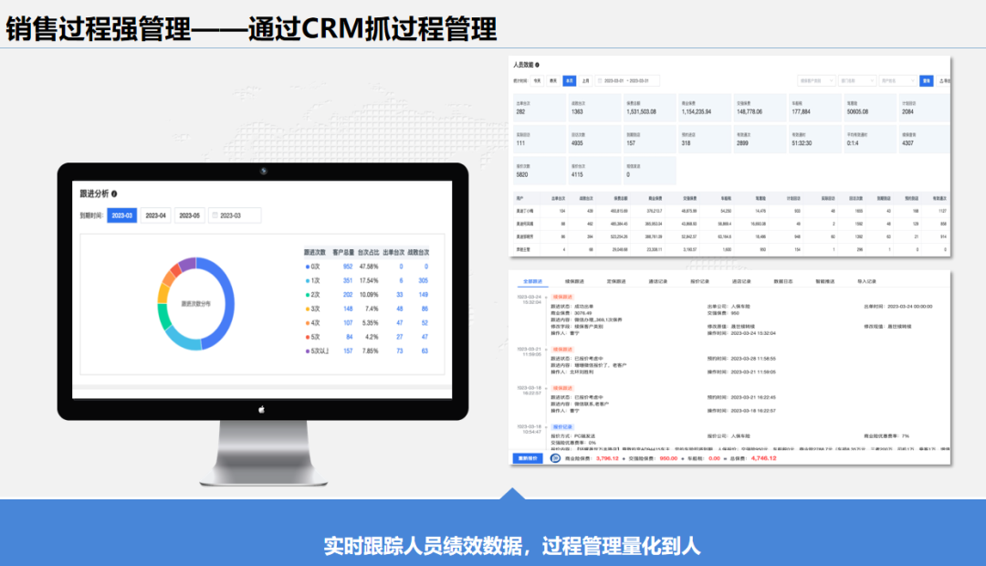 车险是一个定时定量发生的刚需,电话打的够不够?微信上聊天够不够?你的话术够不够专业?设计的服务包能不能产生吸引力这个是关键。在整个过程中,电话的强度是NO.1,权重占到了80%,必须进行及销售过程的管控,帮助助我们的客户把次新车的数量、续转续的数量、在修不在保的数量,所有的按照车型到期时间梳理完成之后,导入到了我们的CRM系统,并且分配给了对应了每一个续保专员,之后规定每天什么时候进行首次报价,什么时候进行首次通话,一个客户在规定的一周内一个月内打多少电话做多少次微信聊天,并且所有的通话必须录音,以便话术抽检