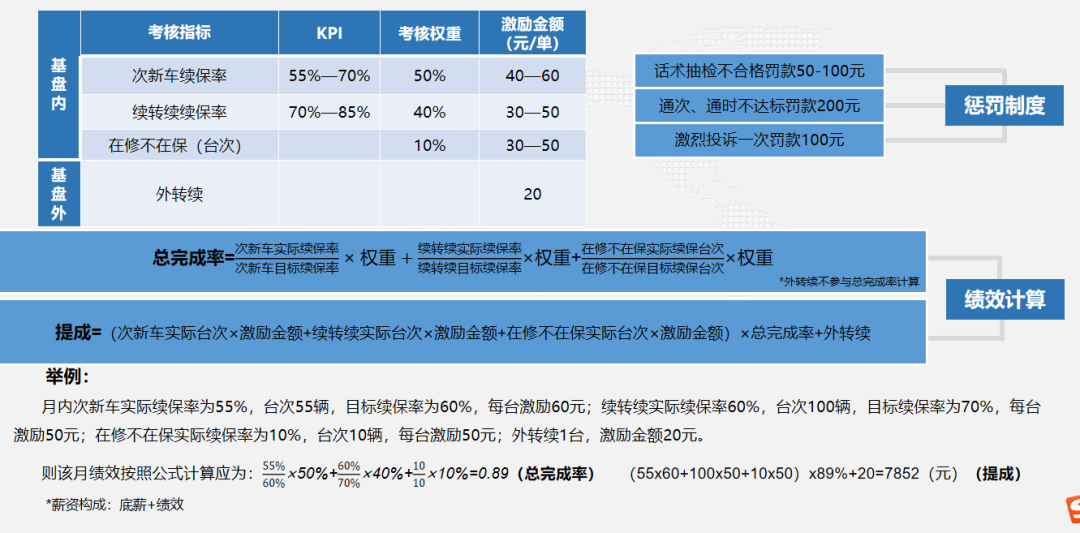重赏之下必有勇福,只有解放了生产力,最终的结果才能提上去。激励考核样本参考附下图,那是结合绝大部分能够做的优秀的豪华品牌和中低端品牌,给到大家的一个样例,供大家去参考下。
