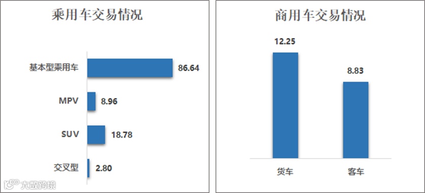 4月乘用车情况:基本型乘用车共交易86.64万辆,环比下降6.87%,同比增长33.16%;SUV共交易18.78万辆,环比下降5.85%,同比增长32.22%;MPV共交易8.96万辆,环比下降6.22%,同比增长40.97%;交叉型乘用车共交易2.80万辆,环比下降5.73%,同比增长8.86%。