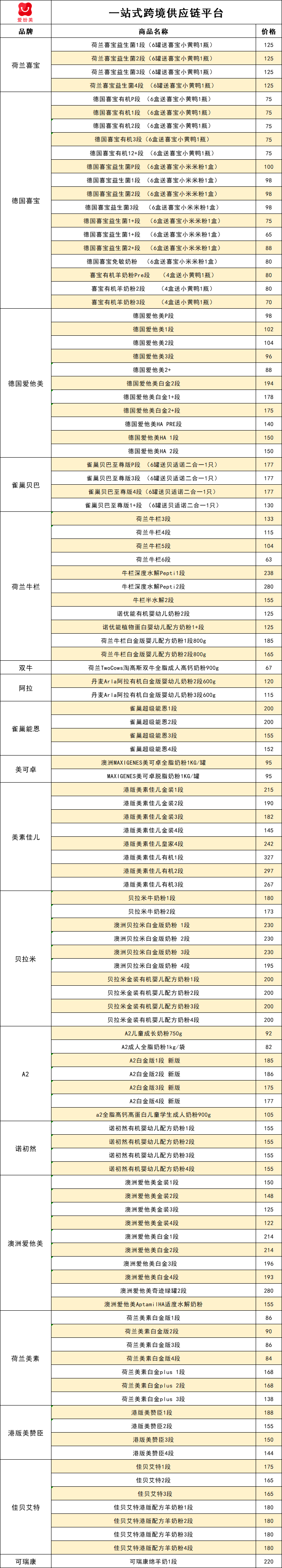婴儿奶粉 | 4月17日汇总表 爱纷美全球购