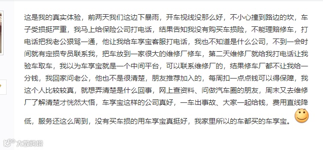 一个既省钱又有保障的共享修车计划俘获了大批车主的心,车享宝+第三者责任险的模式才是新时代的最佳选择。