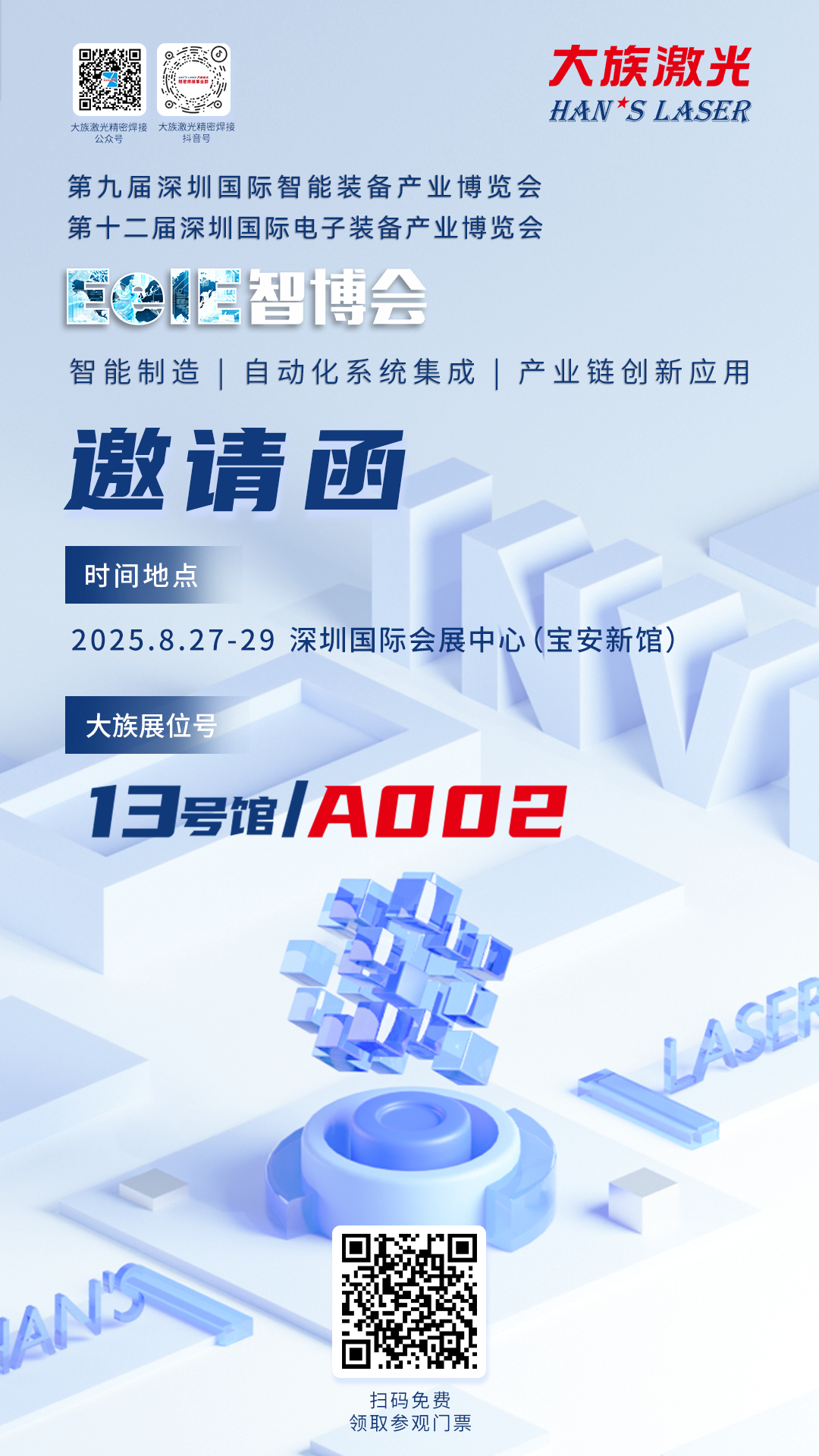 行业盛会整装待发,更多精彩内容和惊喜活动,期待您来馆一探,大族展位13A002等你打卡~期待与您共襄行业盛举,共谱智造新篇!