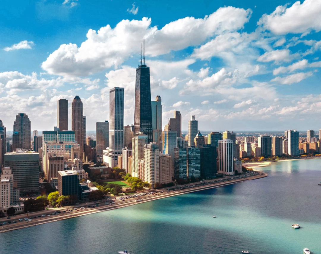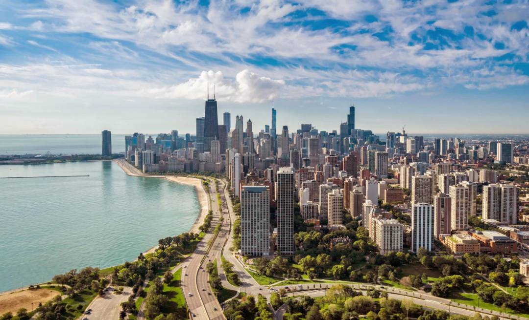 芝加哥,美国第三大城市;密歇根湖,北美五大湖之一,总面积约5.8万平方公里。芝加哥贴湖生长,拥有漫长的湖岸线。