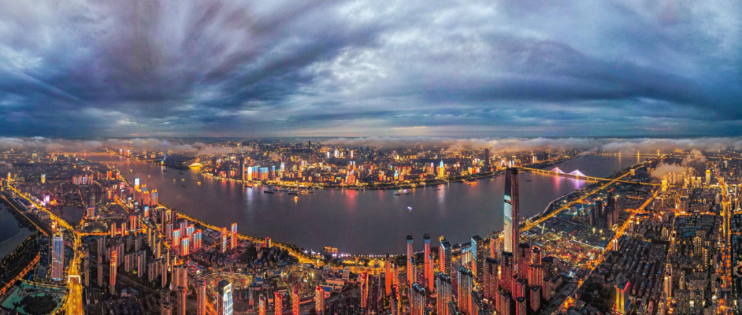 三是以水润城。武汉的两江四岸是城市生长的基本骨架,也是展现城市形象的核心窗口。围绕两江四岸,我们构建了 “ 一心两轴显山水,一廊多片融古今” 的空间框架,统筹两江四岸各类空间要素,推进“ 水·岸·城” 有机融合。
