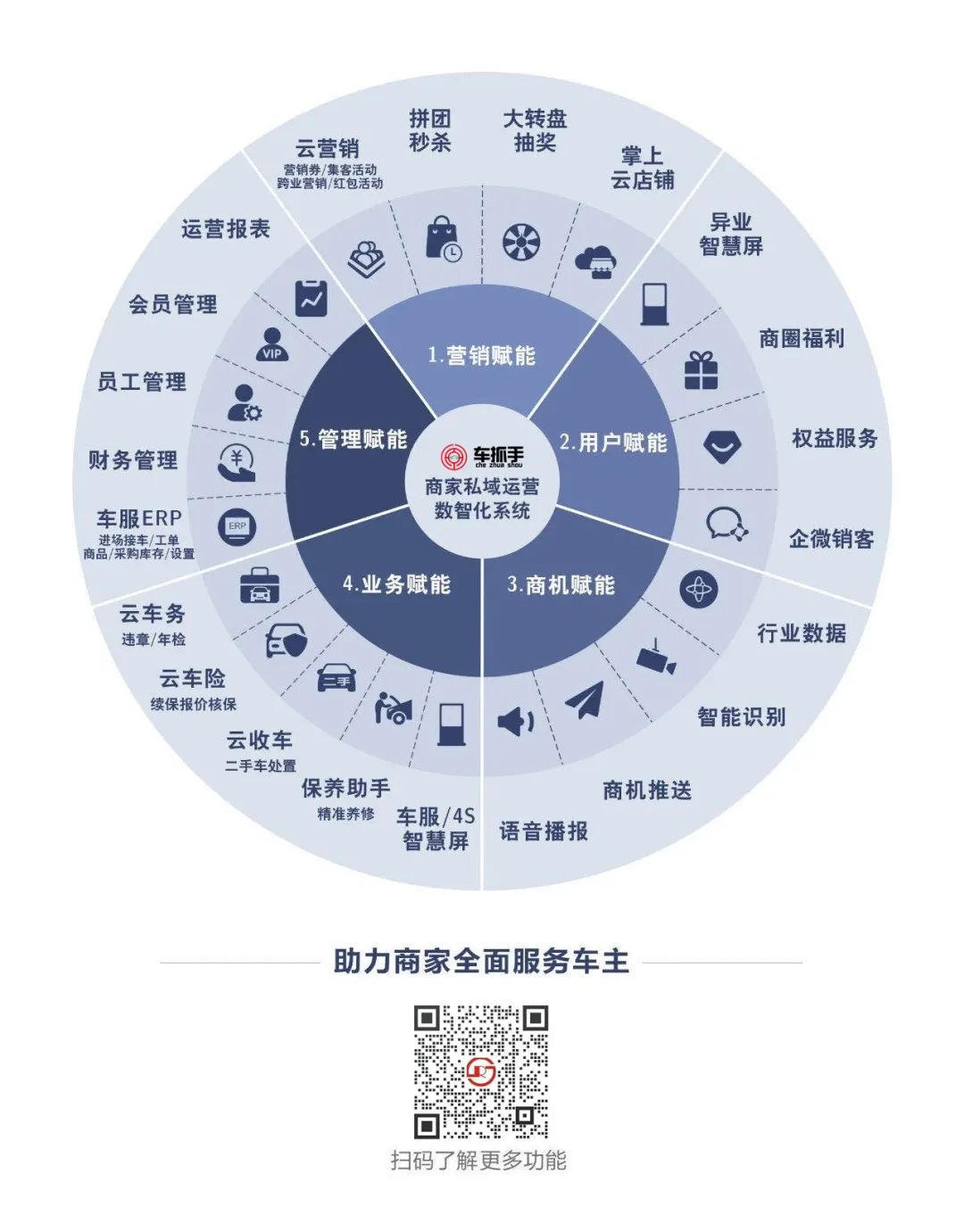助力线下实体经营车服商家和4S经销商全方位打造智慧门店,实现: