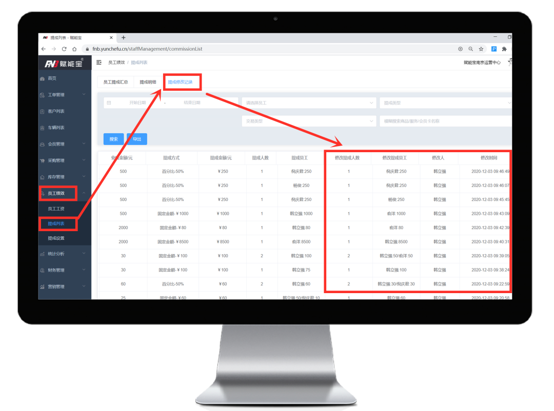 此外,提成明细可做修改,并生成提成修改记录,方便追溯查询。