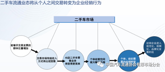 其次是二手车商变化,对车商变化也是巨大的,政策为整个二手车经营打通了所有的障碍。过去很多车商说自己就是个体户,已经习惯做个体户,但以后个体户方式可能在下个阶段很难为继,需要向正规化企业转型,个体户、经纪、中介、夫妻档,这样的小散户状态在新的政策平台下,逐步向规模化、品牌化方向去发展,这同时也对所有个体经营企业提出了更高的要求。需要会管理、懂财务、重售后、塑品牌等等,需要做很多工作。