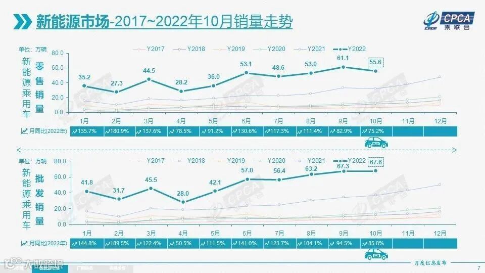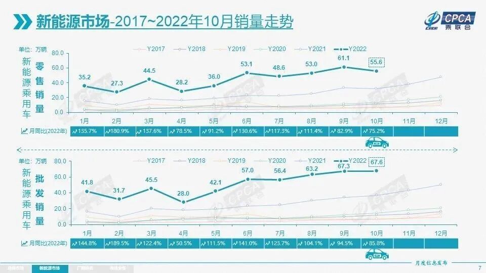 展望11月新能源车市场,乘联会表示,在电动化和智能化驱动下,乘用车新品魅力不断提升。10月以高端新能源车企为代表的新能源车降价,也会给11月新能源车市场带来新增需求。之前,乘联会预测,2022年新能源乘用车销量有望突破600万。