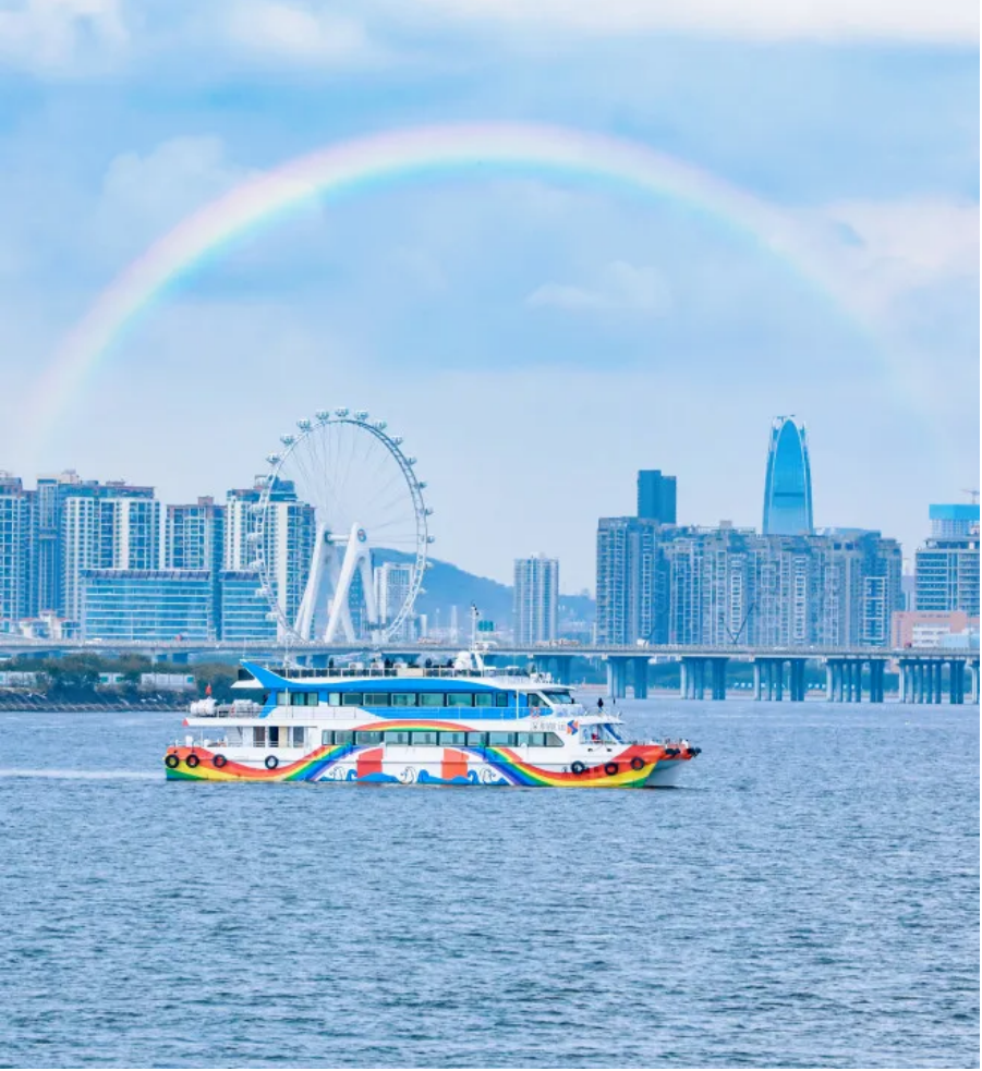 ✅深中通道航线-观光景点:深圳机场码头——东人工岛——深中隧道——西人工岛——穿越深中大桥——深圳机场码头。