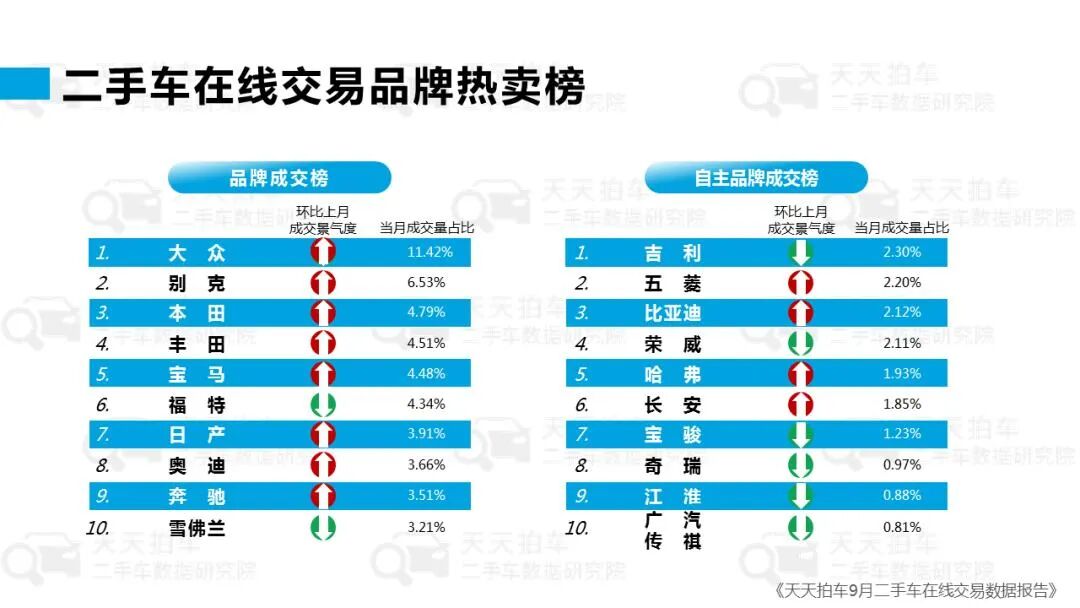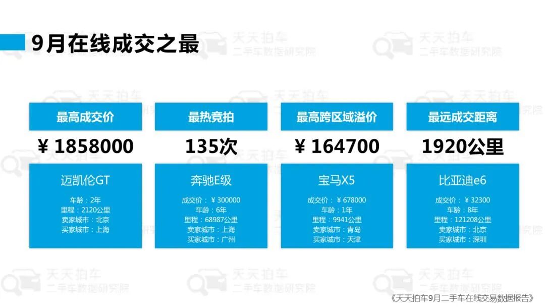 近日,二手车交易在线服务平台天天拍车发布《2022年9月二手车在线交易数据报告》。