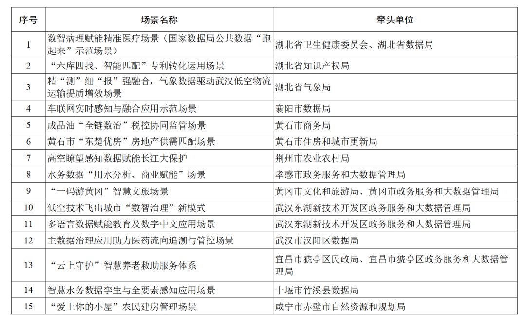 湖北省数据局公共数据“跑起来”重点联系服务示范场景清单(第二批)