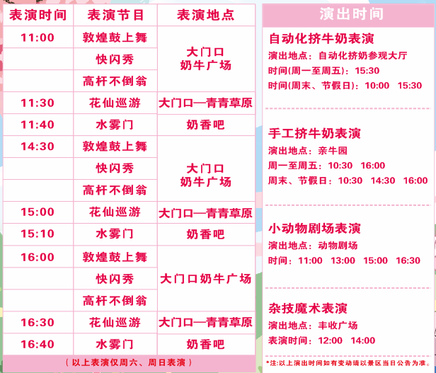 费用包含:醉美樱花节+网红粉粉熊+敦煌鼓舞+花仙巡游+无动力乐园+景区经典4项表演+旋转木马体验