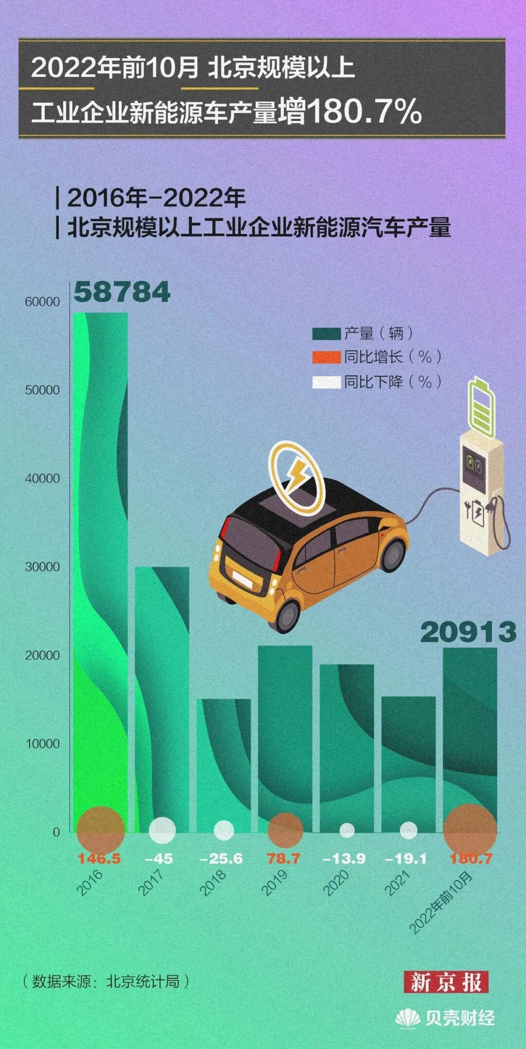 面对新能源汽车这个未来关键变量,北京抓住风口抢先领跑。自2009年,北京就拉开了新能源汽车产业大规模发展的帷幕。十多年来,北京已建成国内最大的新能源汽车研发、应用中心,成为我国新能源汽车产业高地。新京报贝壳财经对北京新能源汽车产业全景扫描,通过数据透视北京新能源汽车发展新方向。