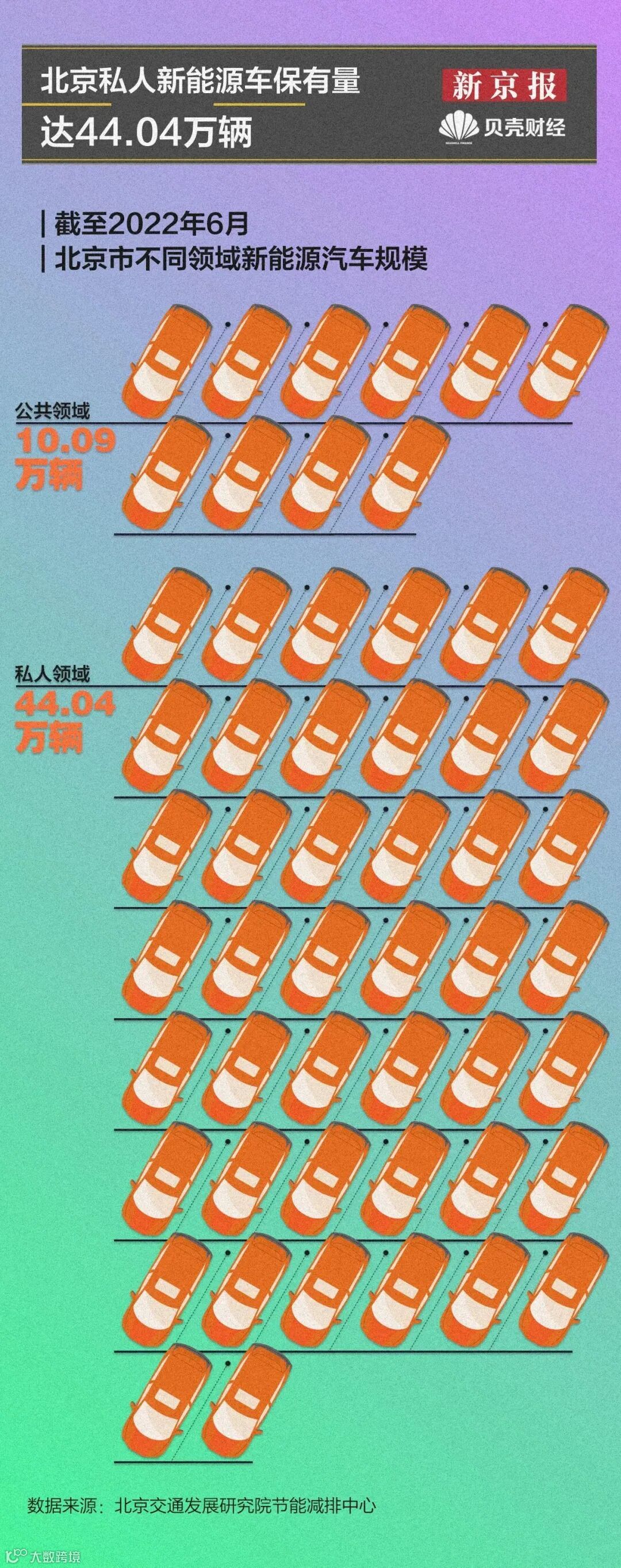 十余年来,北京加大公共领域车辆电动化推进力度,促进私人消费占比逐步提升。截至2022年6月,北京私人领域新能源汽车保有量达44.04万辆,规模远超公共领域。