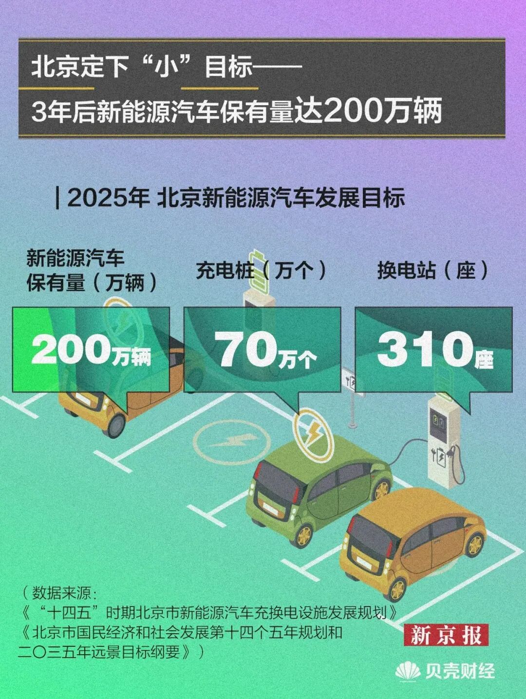 在“双碳”战略部署下,北京新能源汽车产业进入加速阶段。根据北京“十四五”规划纲要,到2025年,北京新能源汽车保有量力争达到200万辆,汽车电动化率由目前的6%提升至30%。此外,北京还将建成与之相匹配的充换电设施体系,力争到2025年,全市电动汽车充电桩累计建成70万个。