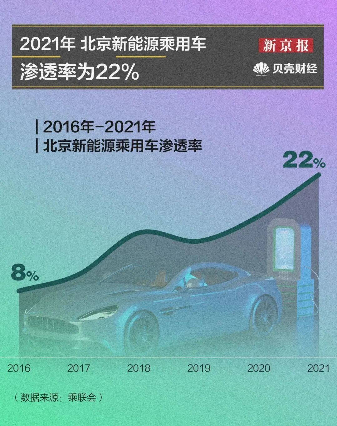 截至2021年底,北京市新能源乘用汽车保有量达50.7万辆,渗透率从2016年的8%增至22%,高于全国水平。