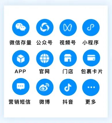 • 线上:公众号、小程序、视频号、跨平台营销、员工推送名片、邀请码等。