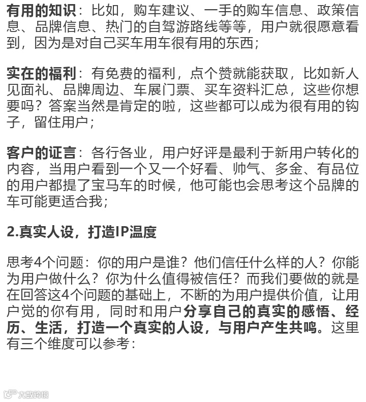 通过实践发现,以下3类的内容最吸引用户(以汽车行业为例):