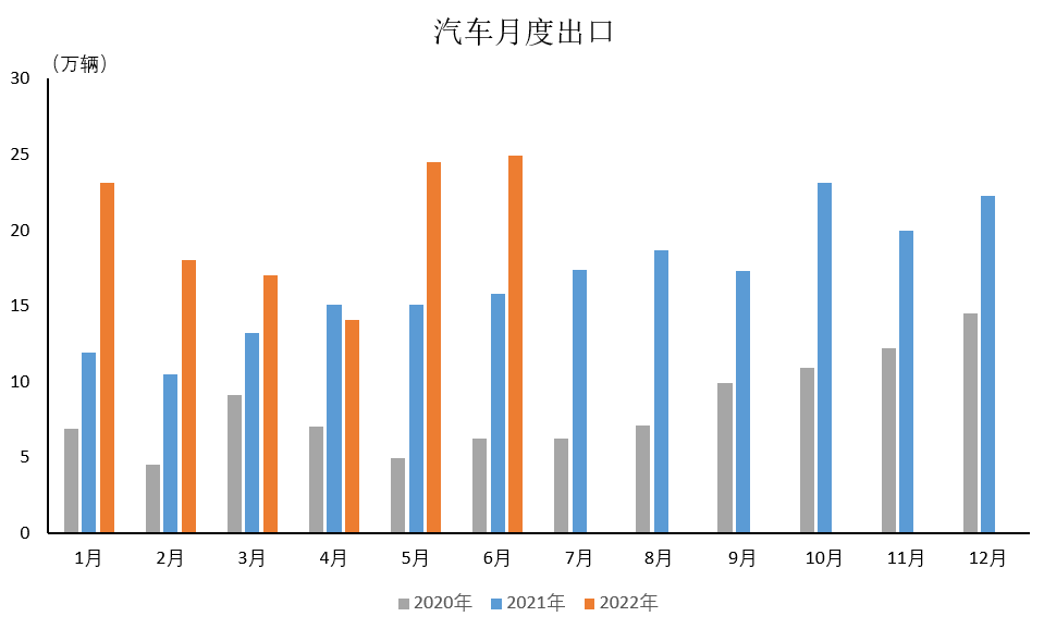 2022年6月,汽车企业出口24.9万辆,连创历史新高,环比增长1.8%,同比增长57.4%。