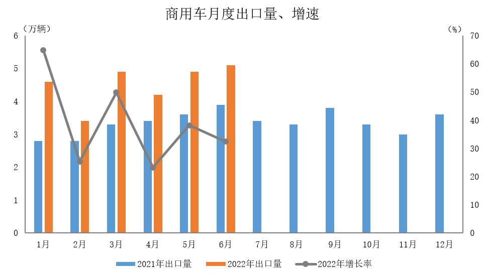 2022年6月,商用车出口5.1万辆,环比增长4.7%,同比增长32.4%。