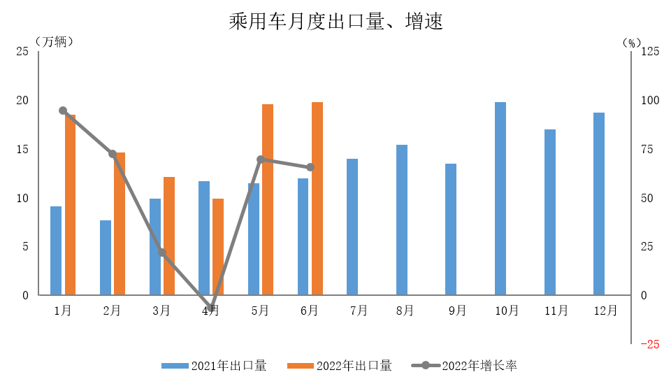 2022年1-6月,乘用车出口94.5万辆,同比增长49.7%。