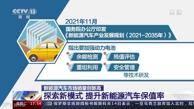 去年9月,工信部等五部委联合发布了《新能源汽车动力蓄电池梯次利用管理办法》,解决电池高效回收、健康状态快速评估等问题。去年11月,国务院办公厅印发了《新能源汽车产业发展规划(2021-2035年)》,指出要加强动力电池余能检测、残值评估、重组利用、安全管理等技术研发。目前,多家新能源汽车车企也在探索新模式,提升新能源汽车的保值率。